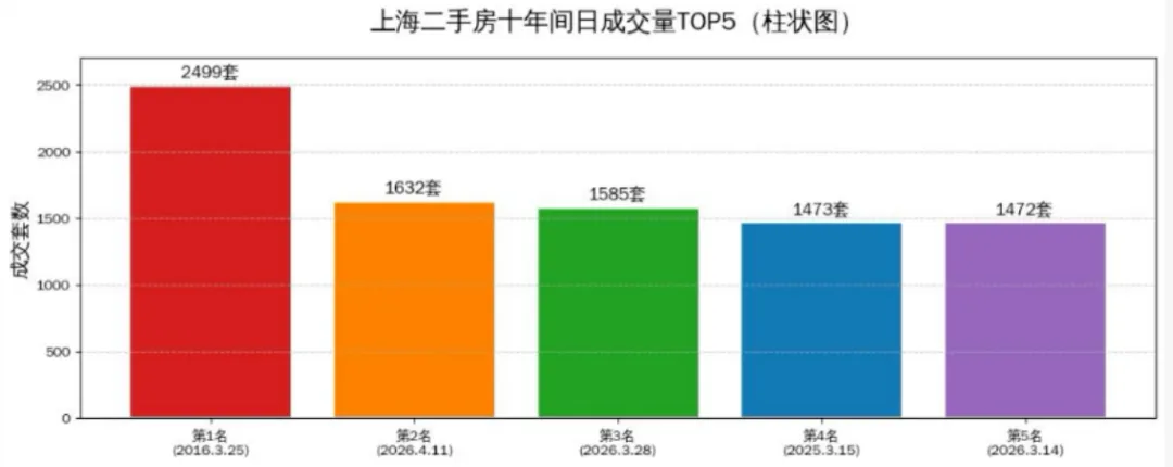 4月11日,也就是周六,上海二手房的日成交数据来到了1632套,再次打破3月28日的1585套。