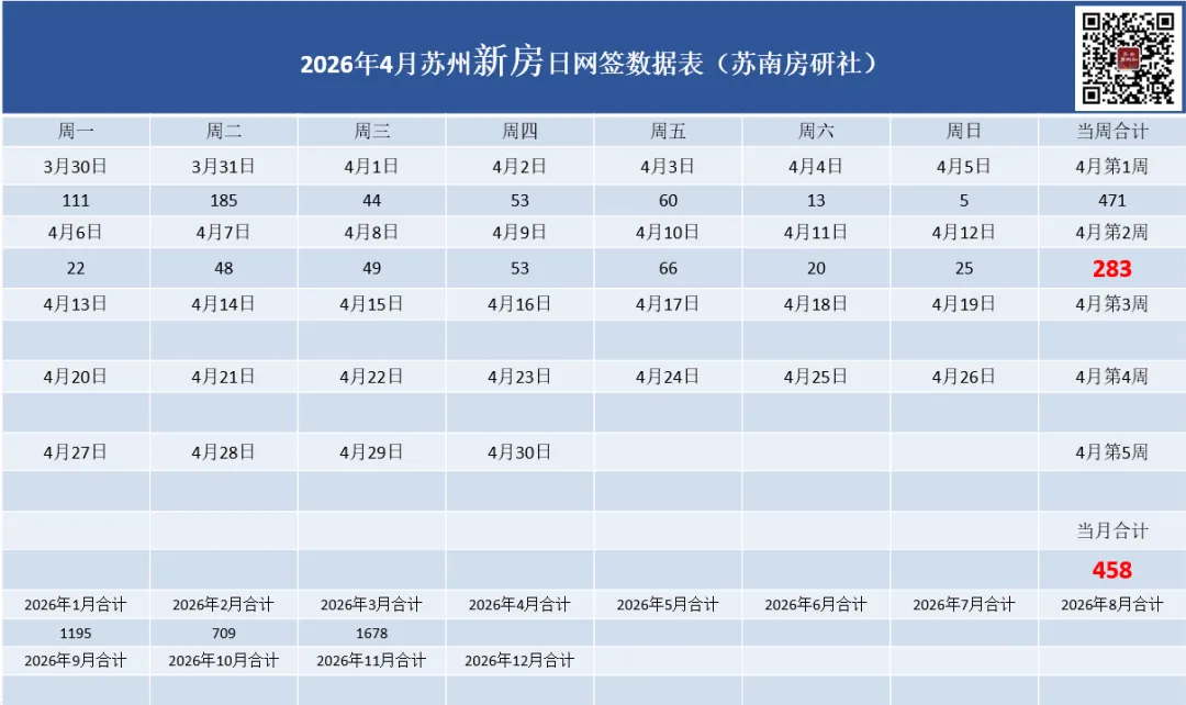 4月已过去三分之一,新房的成交套数在458套,如果按照这个节奏下去,4月份苏州的新房总成交套数不到1500套。
