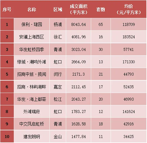 上海商品住宅成交TOP10(2026.4.6-2026.4.12)