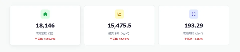 120㎡以上面积段、四房及以上户型、300万以上总价段占比均明显提升,改善型产品成为本月成交增量的核心驱动。