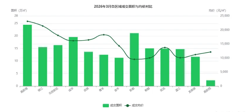 天府新区表现最为亮眼,成交面积环比增长156.4%,均价环比上涨4.20%,涨幅居全市第一,反映该区域市场热度持续攀升;