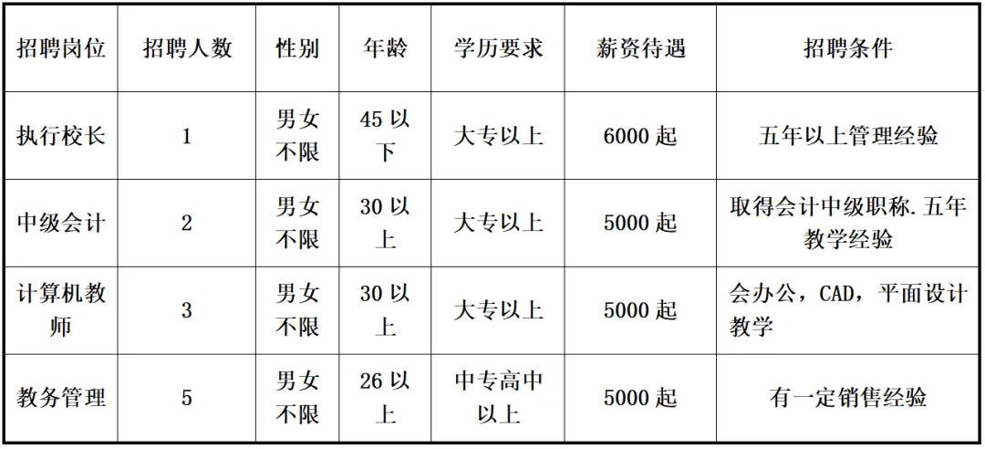 教务管理:熟悉办公自动化,性格开朗有一定表达能力,26岁以上;