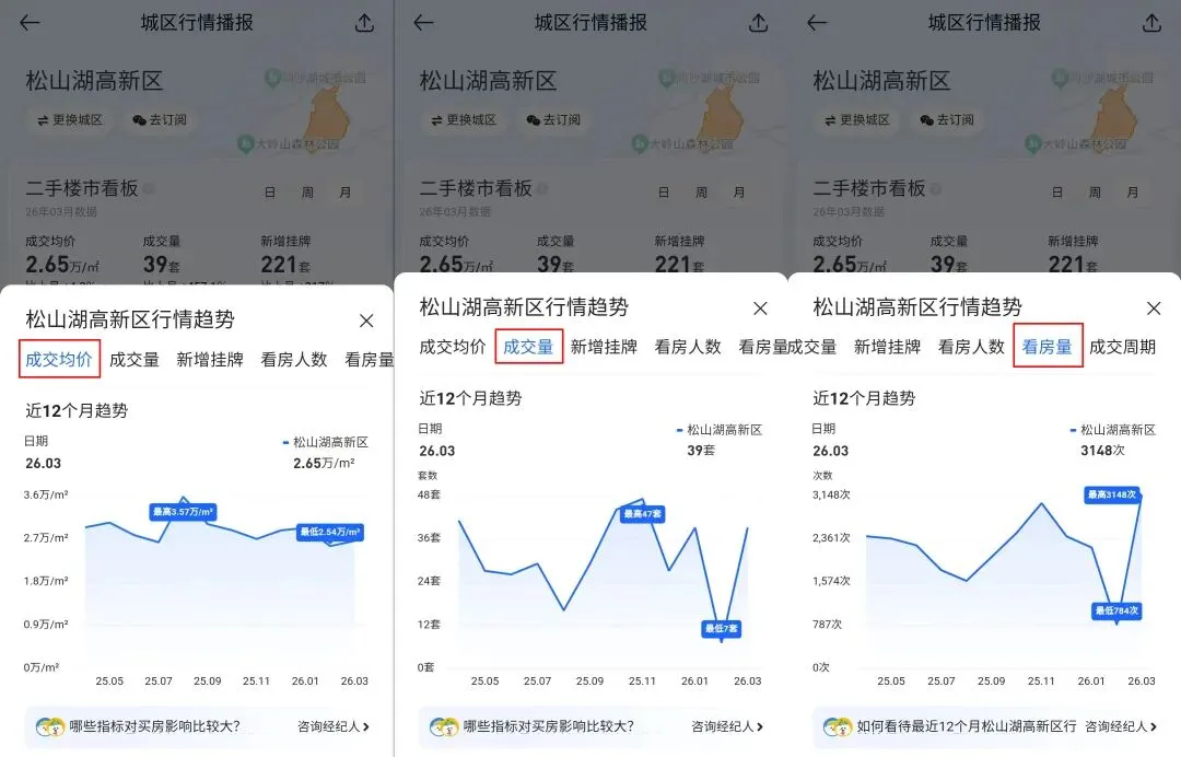 今年3月,松山湖成交价环比上涨4.3%,成交量是2月份的4倍。看房量也达到高达3148次,是近一年的峰值。(源于贝壳数据)|截图自贝壳找房