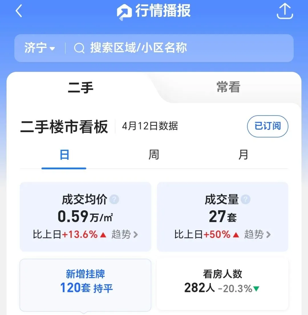 >济宁二手房每日成交数据|4月12日