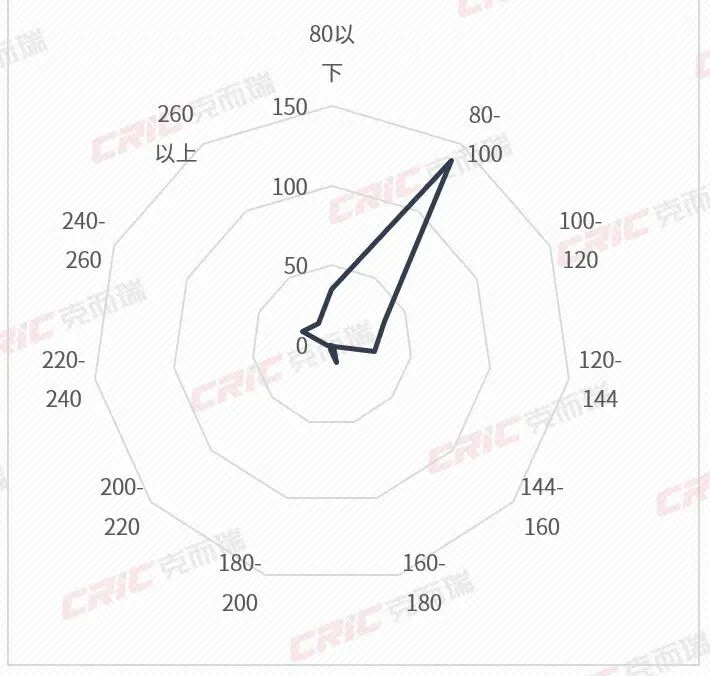 再看岛内外成交占比,47%:53%,岛内占比大幅提升,自然带动均价水涨船高。联发环岛新澍、招商湾湖臻境等岛内项目也持续发力,4.0-4.5万/㎡价格段成成交小高峰,80-100㎡户型以48%占比稳居C位,刚需刚改还是主力。