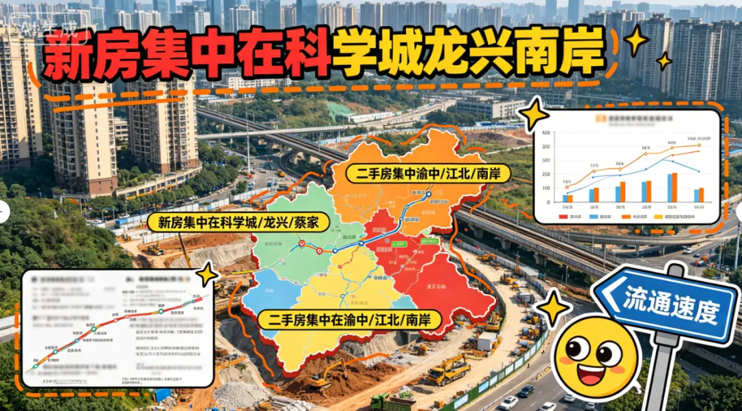 再看你最在乎的位置和配套:新房:基本都在科学城、龙兴、蔡家、水土这些新区,路宽、环境好,但配套要等、人气要养。二手房:全在渝中、江北、南坪、沙坪坝成熟区,学校、医院、商圈、轻轨全部现成,下楼就是小面、超市、公交。