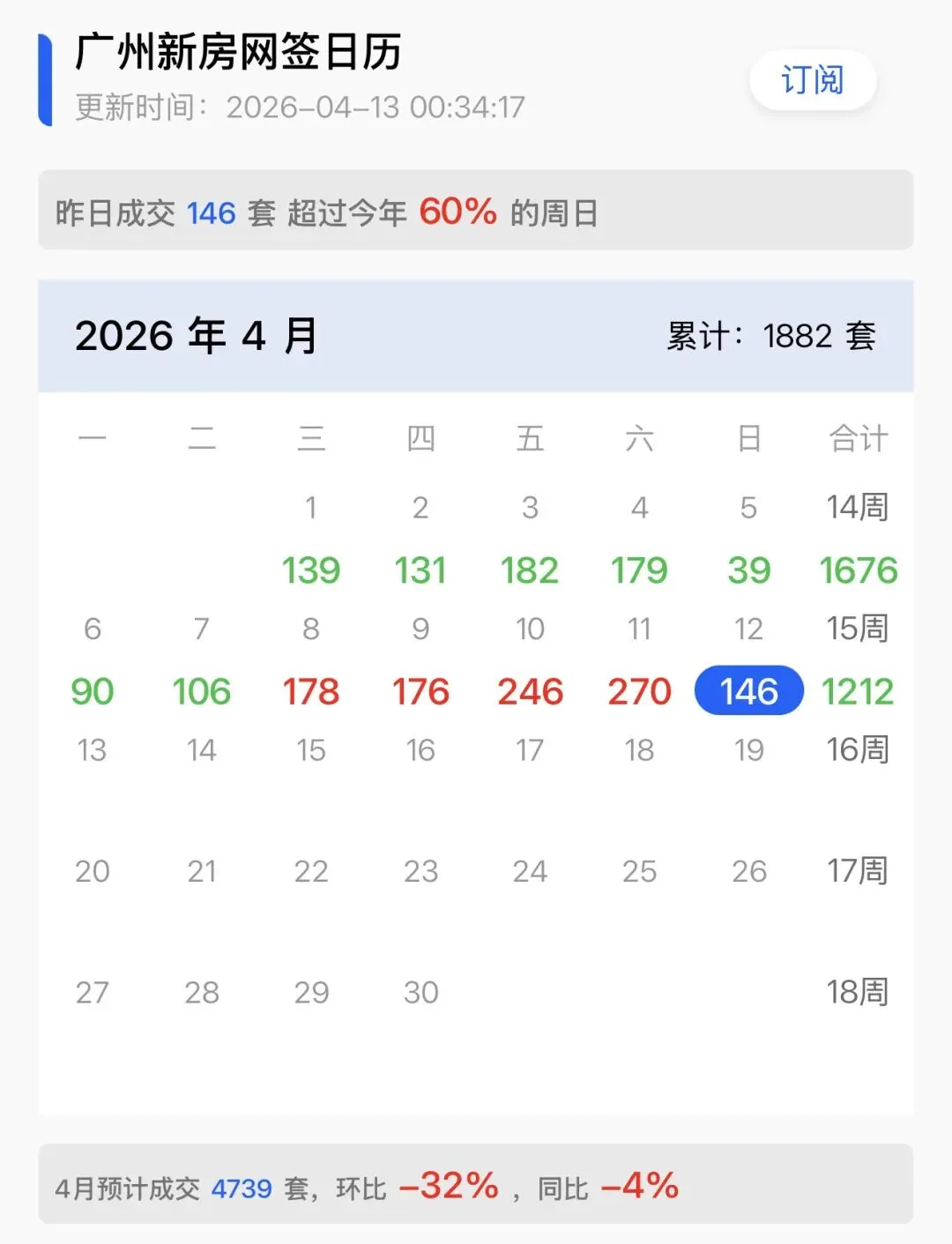 从一手房数据来看。也在呈现抓紧稳步提升态势。4月1-12日累计网签1882套,预估全月4739套。整体略低于3月7059套。