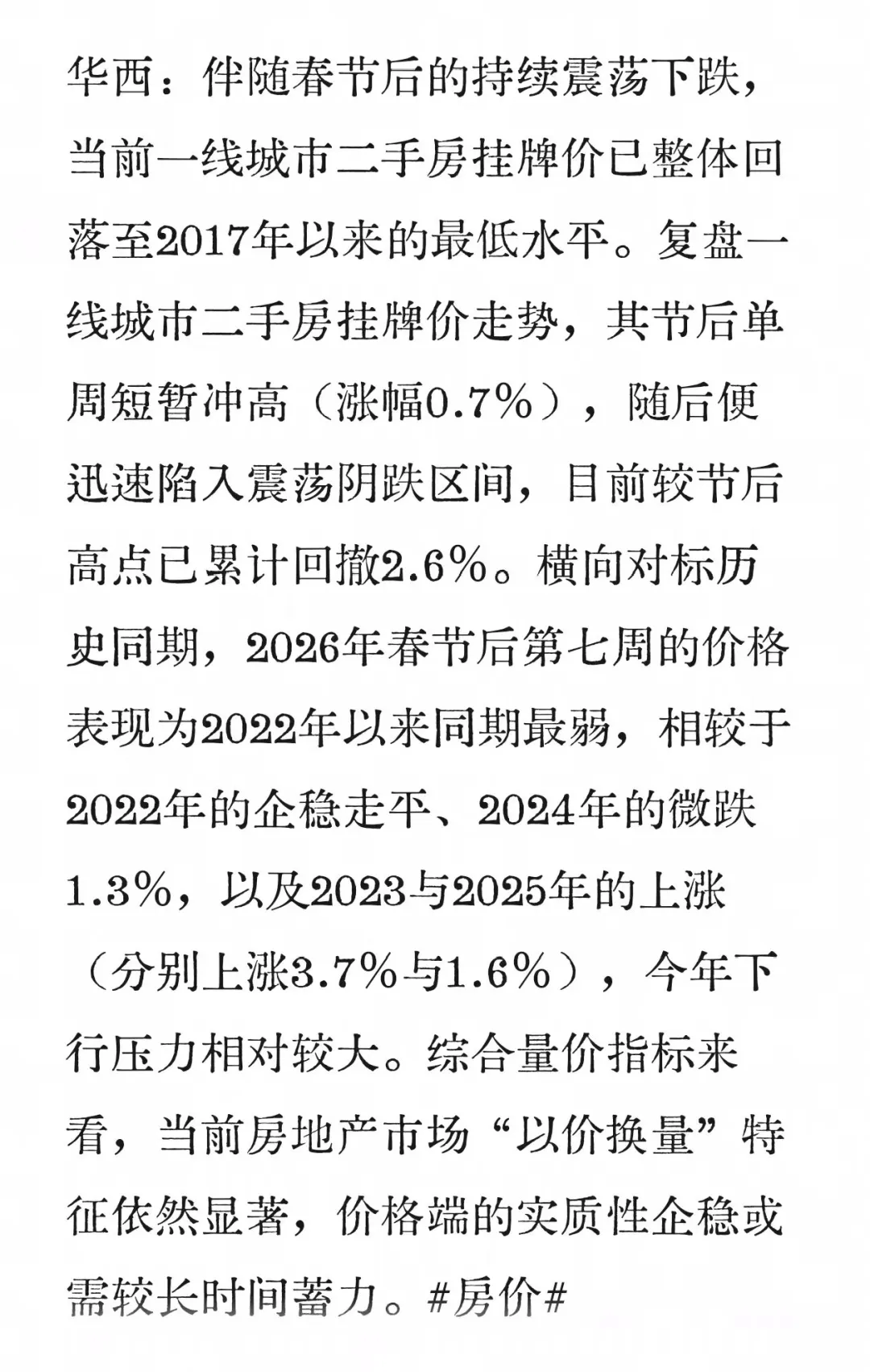 【华西固收】一线城市二手房挂牌价转跌
