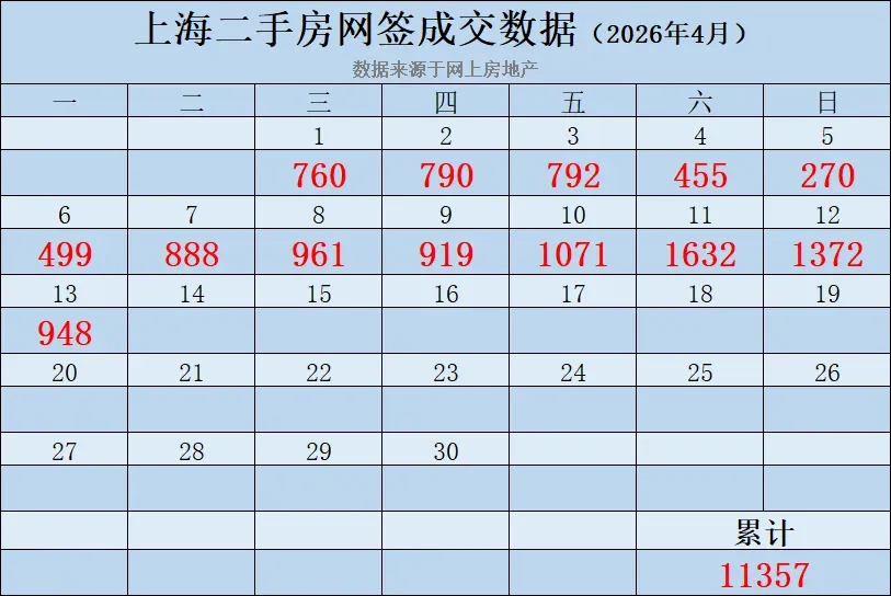 2026年4月上海二手房成交统计:(数据来源网上房地产)