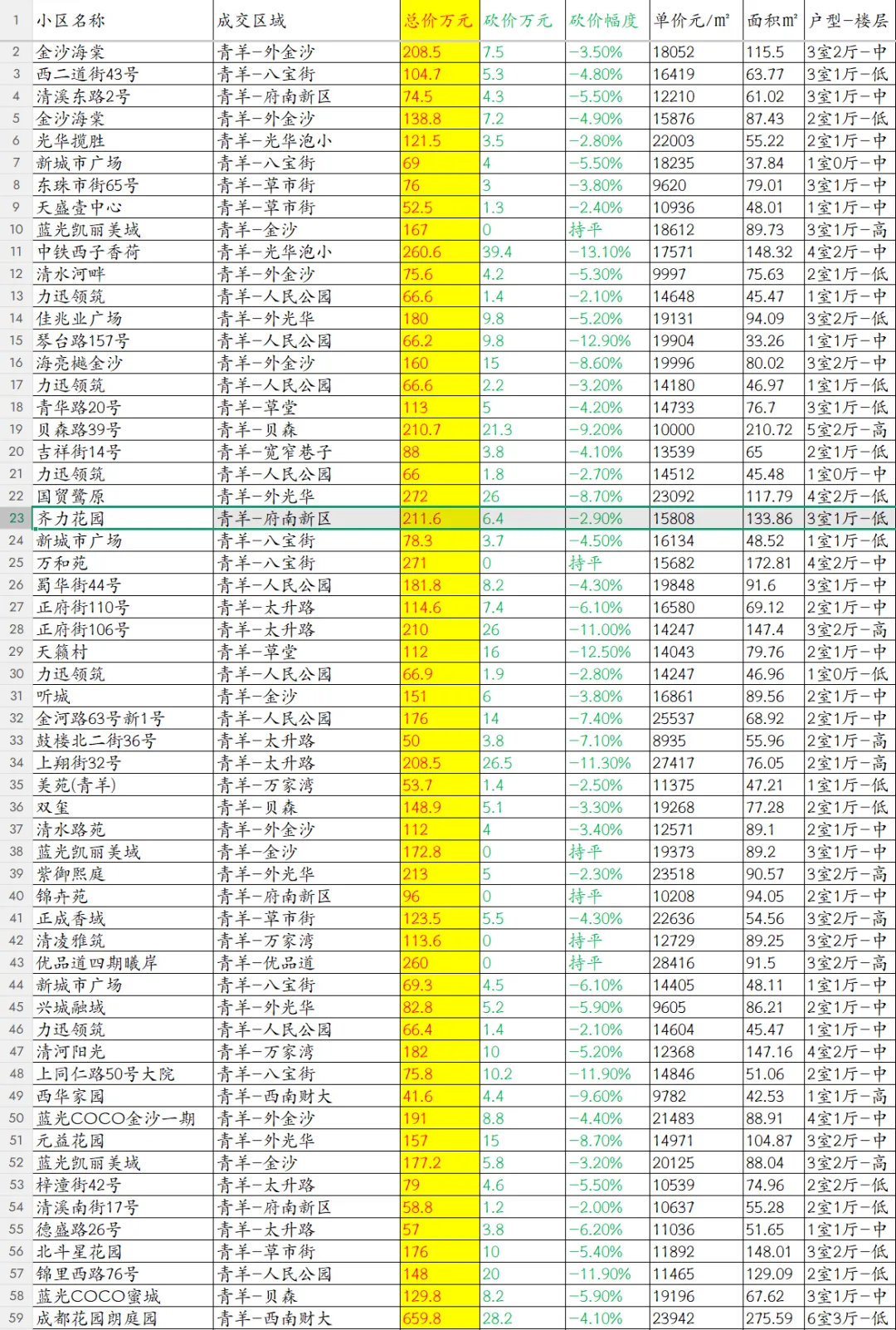 成都青羊区118套二手房成交曝光!外金沙、光华泡小这些小区降价最多![20260414期]