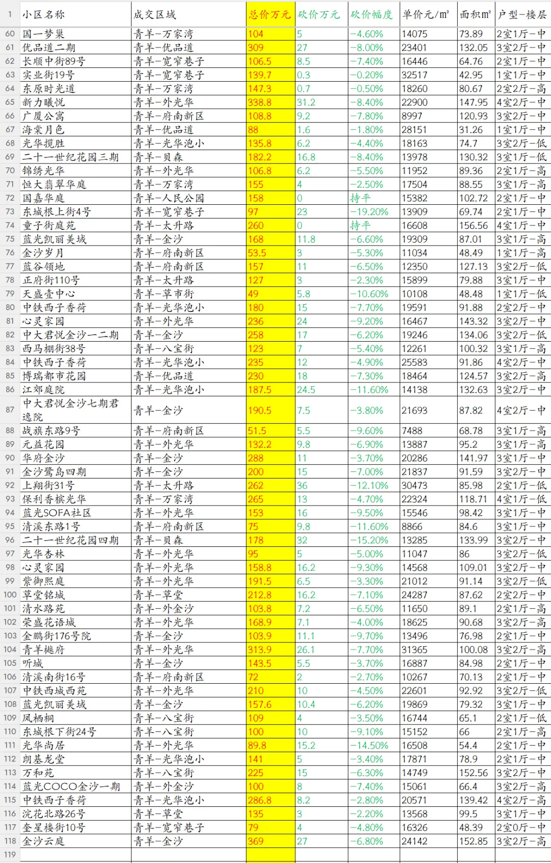 >成都青羊区118套二手房成交曝光!外金沙、光华泡小这些小区降价最多![20260414期]