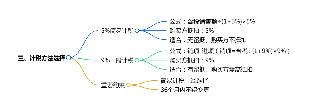 三、计税方法选择:5%简易计税VS 9%一般计税
