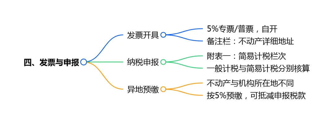 小结:发票开具、纳税申报、税款预缴三个环节均需体现简易计税特征,备注栏地址、简易计税栏次填报、异地预缴是操作中的高频风险点,需严格遵循。