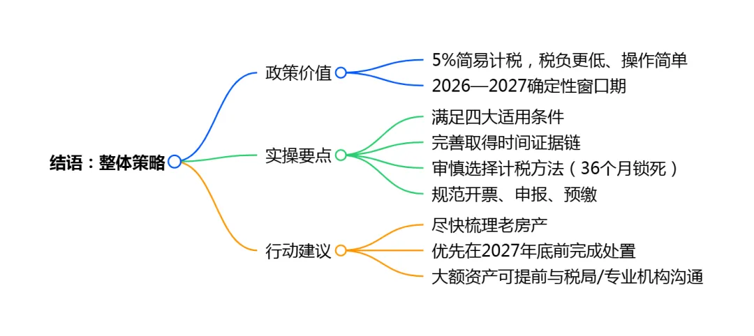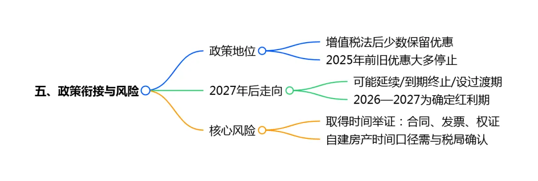小结:2027年底是政策确定性终点,此后存在不确定性,建议企业评估出售计划,优先在窗口期内完成交易,同时完善"取得时间"证据链以备核查。