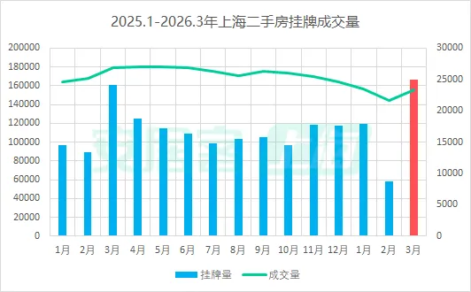 如果用四个字形容3月的上海二手房,那就是:量能爆发。