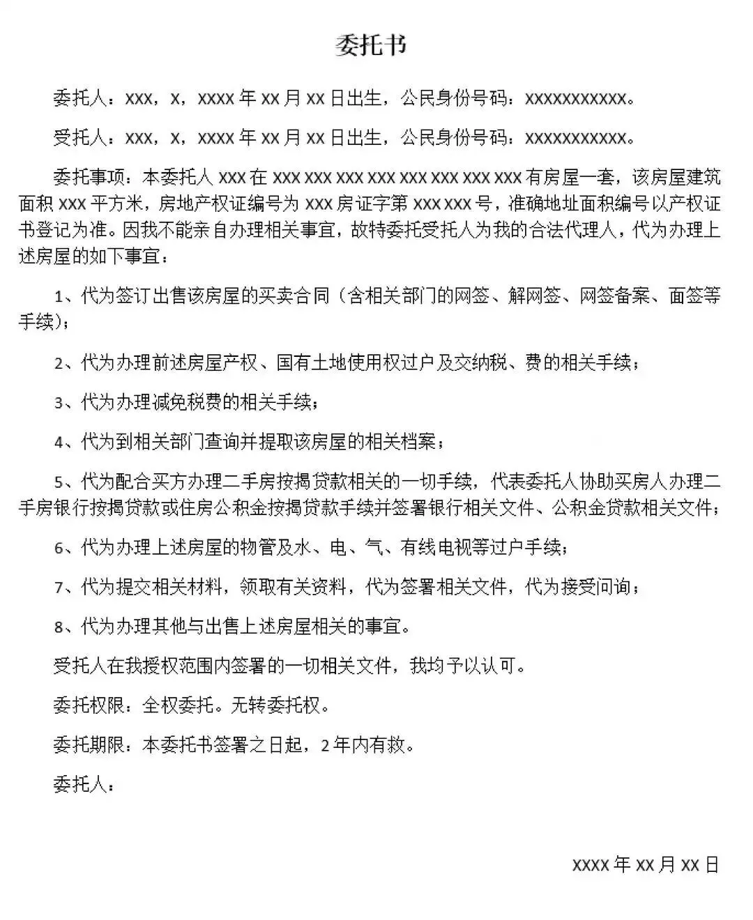 👉 用于正式房产交易或过户的委托书,通常需要办理公证,才能被相关部门认可。